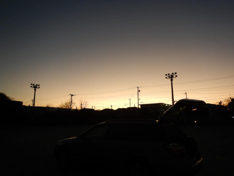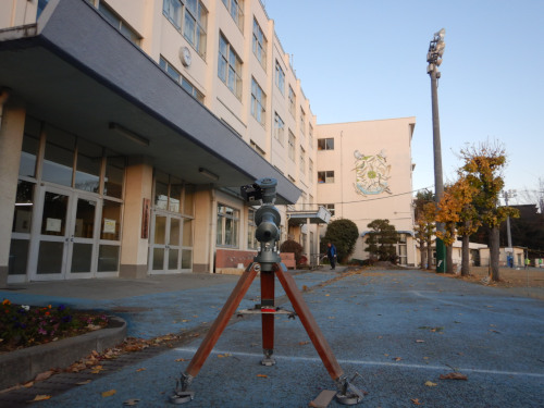 望遠鏡を片付けようと校庭へ出ると、正門から子供が駆け寄ってきました。