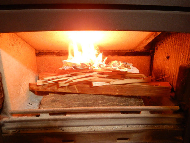 急に冷えたので薪ストーブに今季最初の火入れをします。